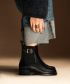 Notre modèle PADMA est une bottine plate avec élastique décoratif et zip intérieur. Avec son talon plat et ornée d'une jolie boucle dorée elle est la paire confortable et élégante à avoir au quotidien.