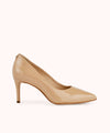 Fabriqué en cuir vernis nude, cet escarpin s'adapte aisément à toutes vos tenues, qu'elles soient formelles ou décontractées. Sa teinte nude, à la fois polyvalente et élégante, en fait un choix idéal pour toute garde-robe.