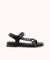 Ce modèle, disponible en cuir noir, est orné de clous en forme de cônes sur ses brides multiples, ajoutant une touche de sophistication à son design. La semelle est embellie par une trépointe incrustée de mini clous, ce qui lui confère un look résolument branché.