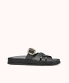 La sandale plate CHANI est le choix parfait pour allier confort et élégance. Conçue en cuir lisse noir, elle se distingue par son design moderne qui s'adapte à toutes vos tenues.